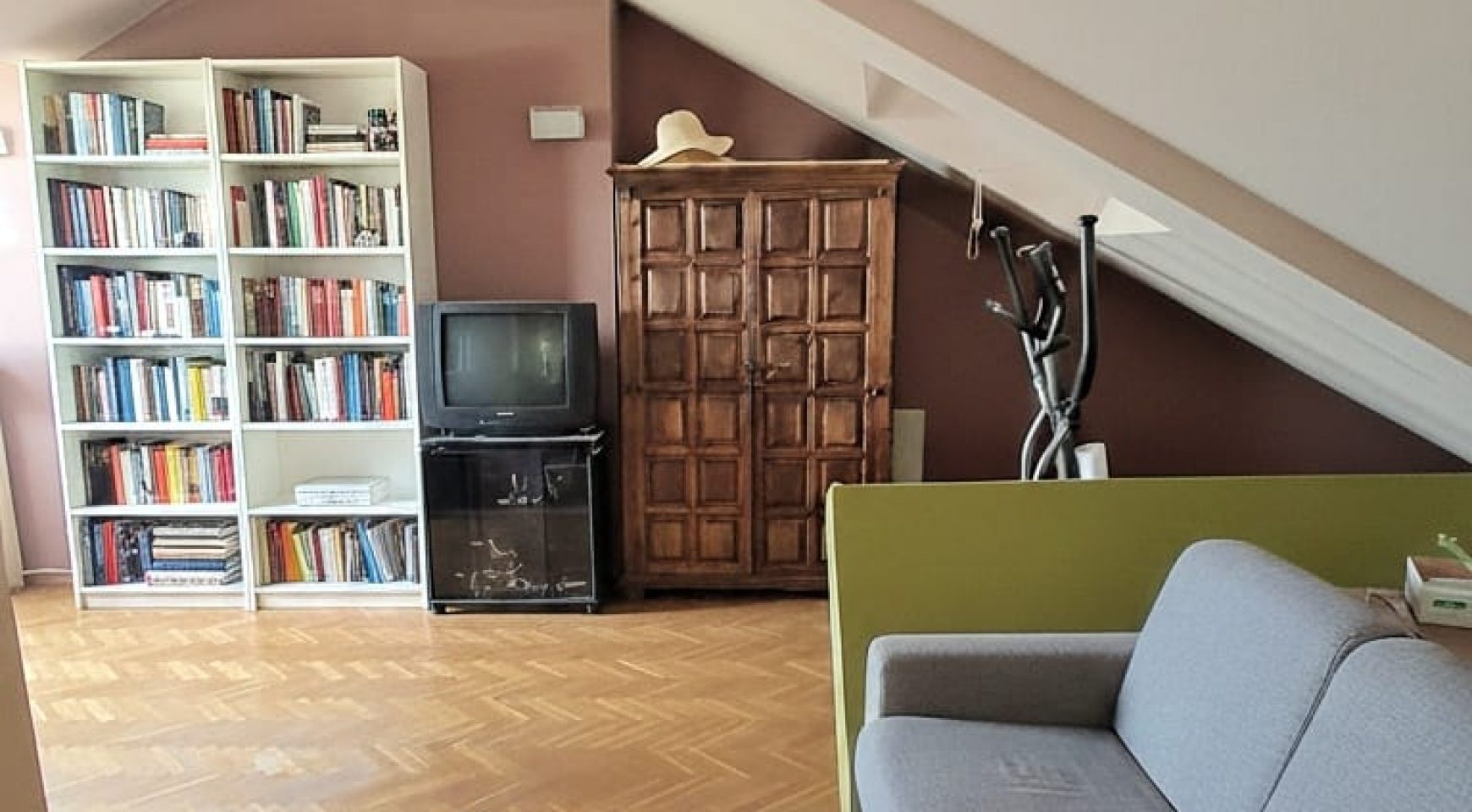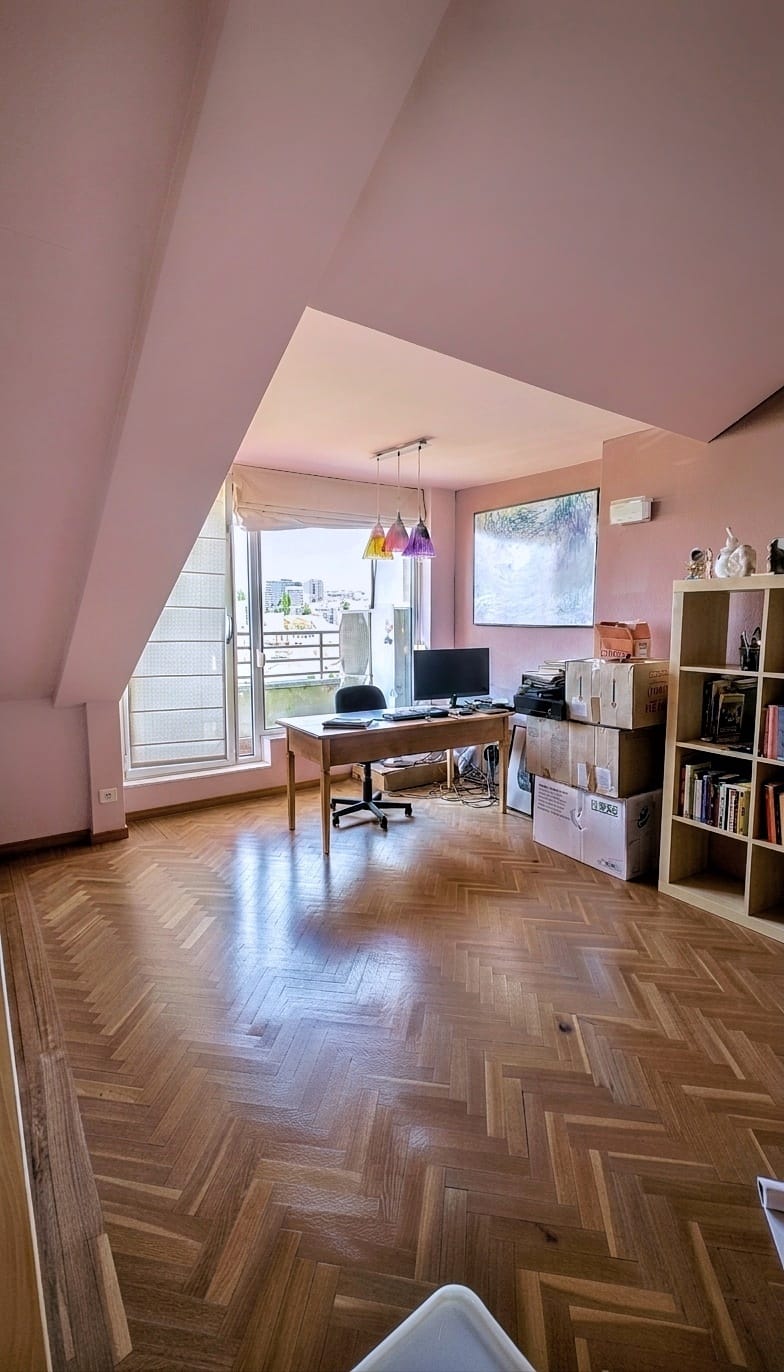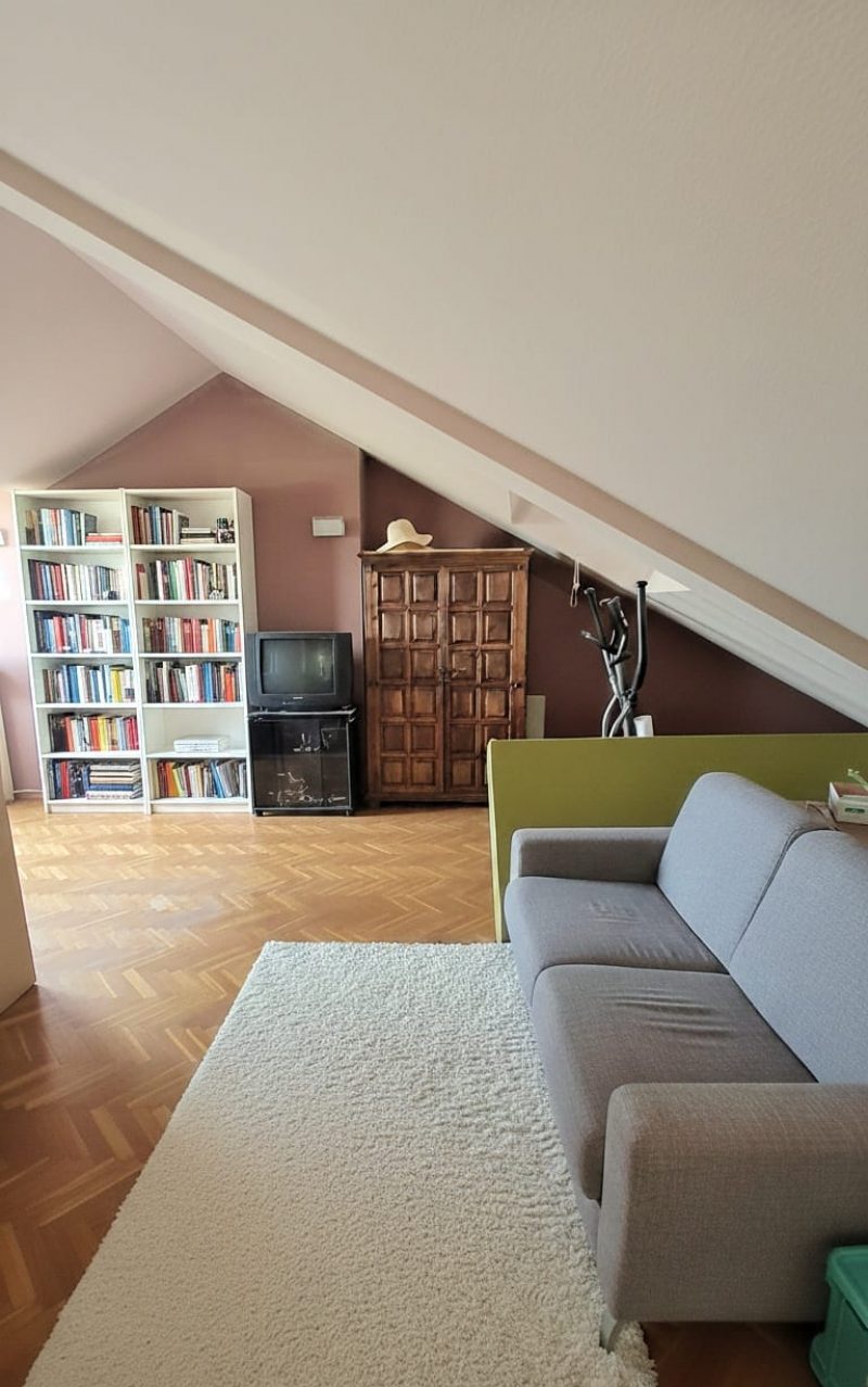 Segunda planta: acogedora habitación abuhardillada con acceso a terraza privada y baño.