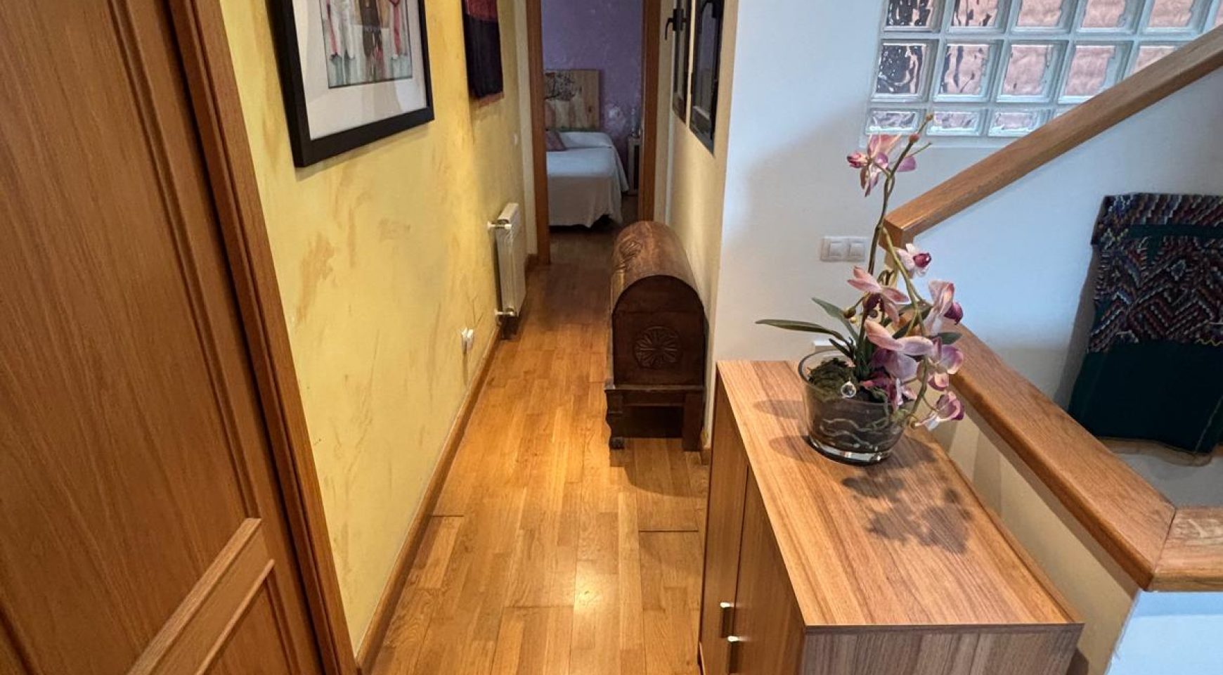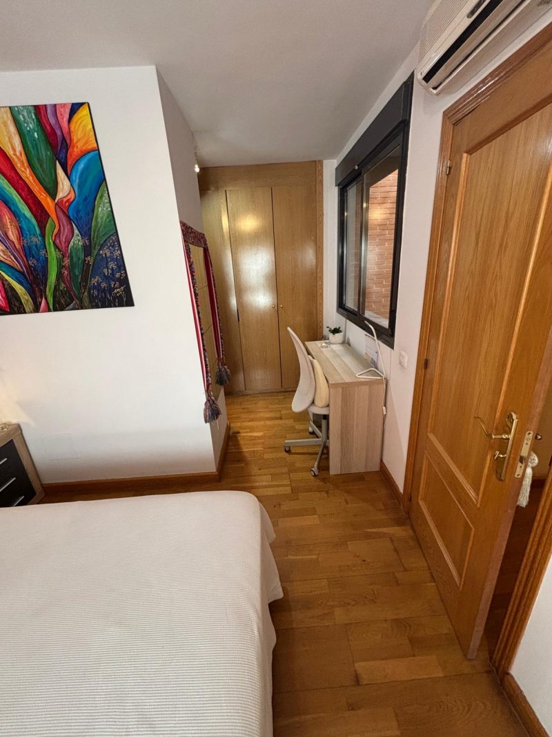 Suelo de tarima, puertas de roble, armarios empotrados en todas las habitaciones y aire acondicionado.