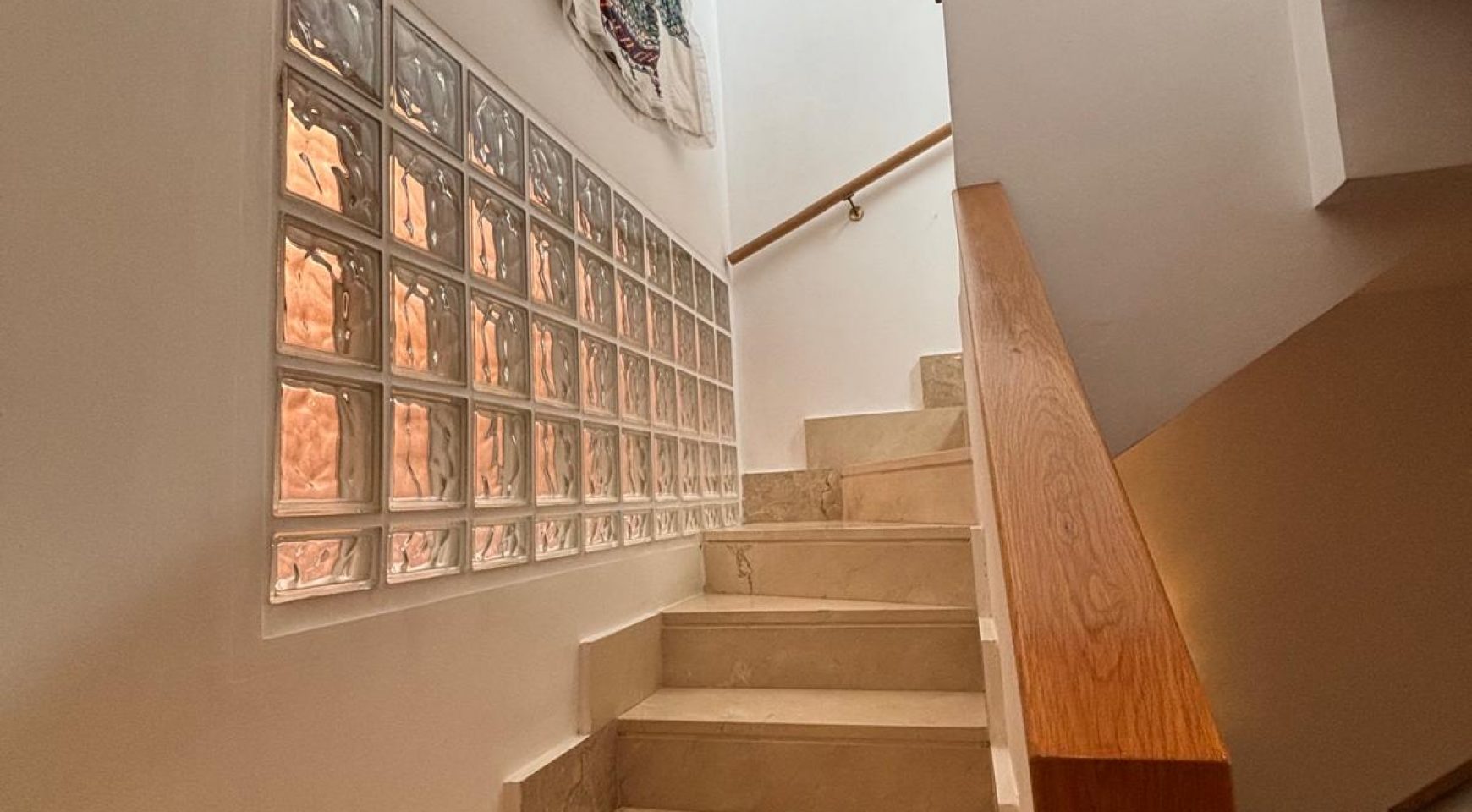 Todos los pasillos están diseñados con ventanales que llenan la casa de luz.