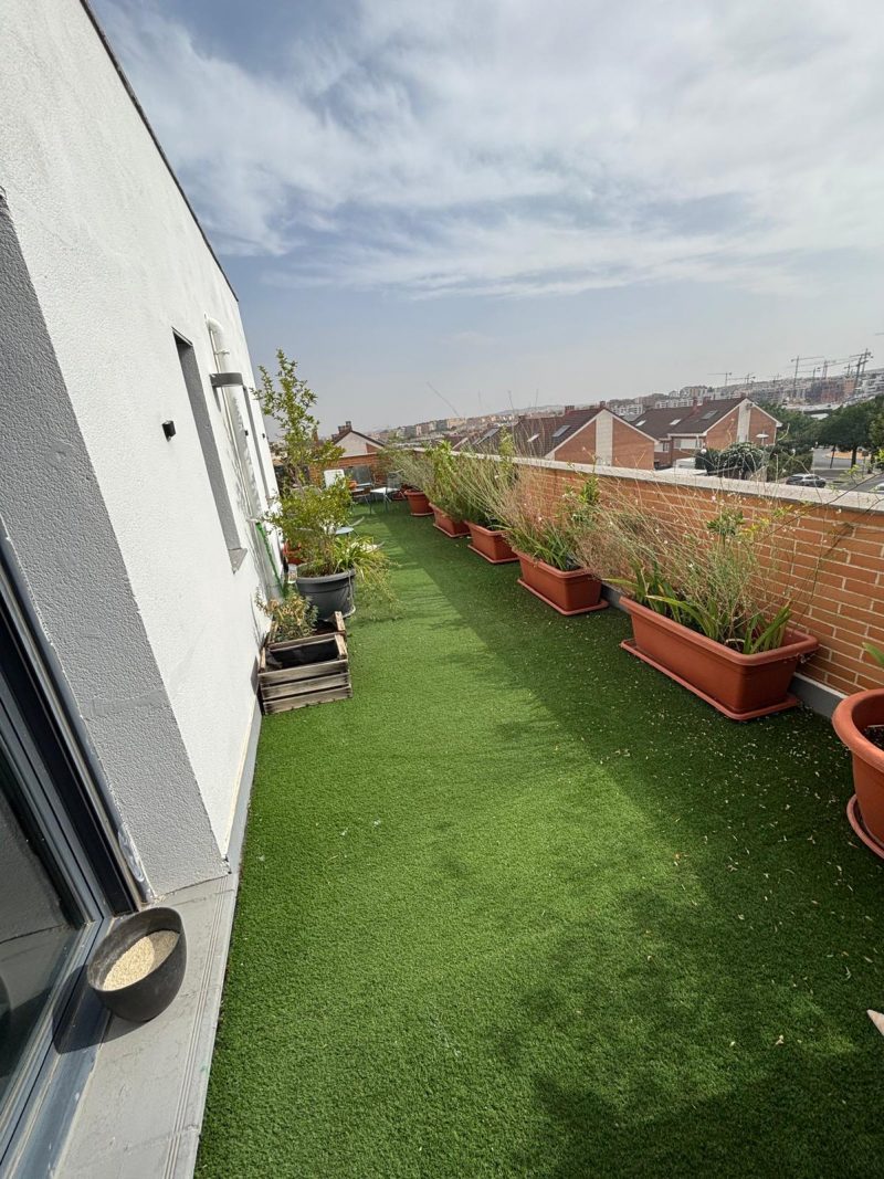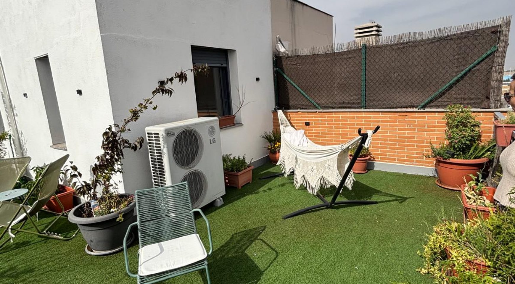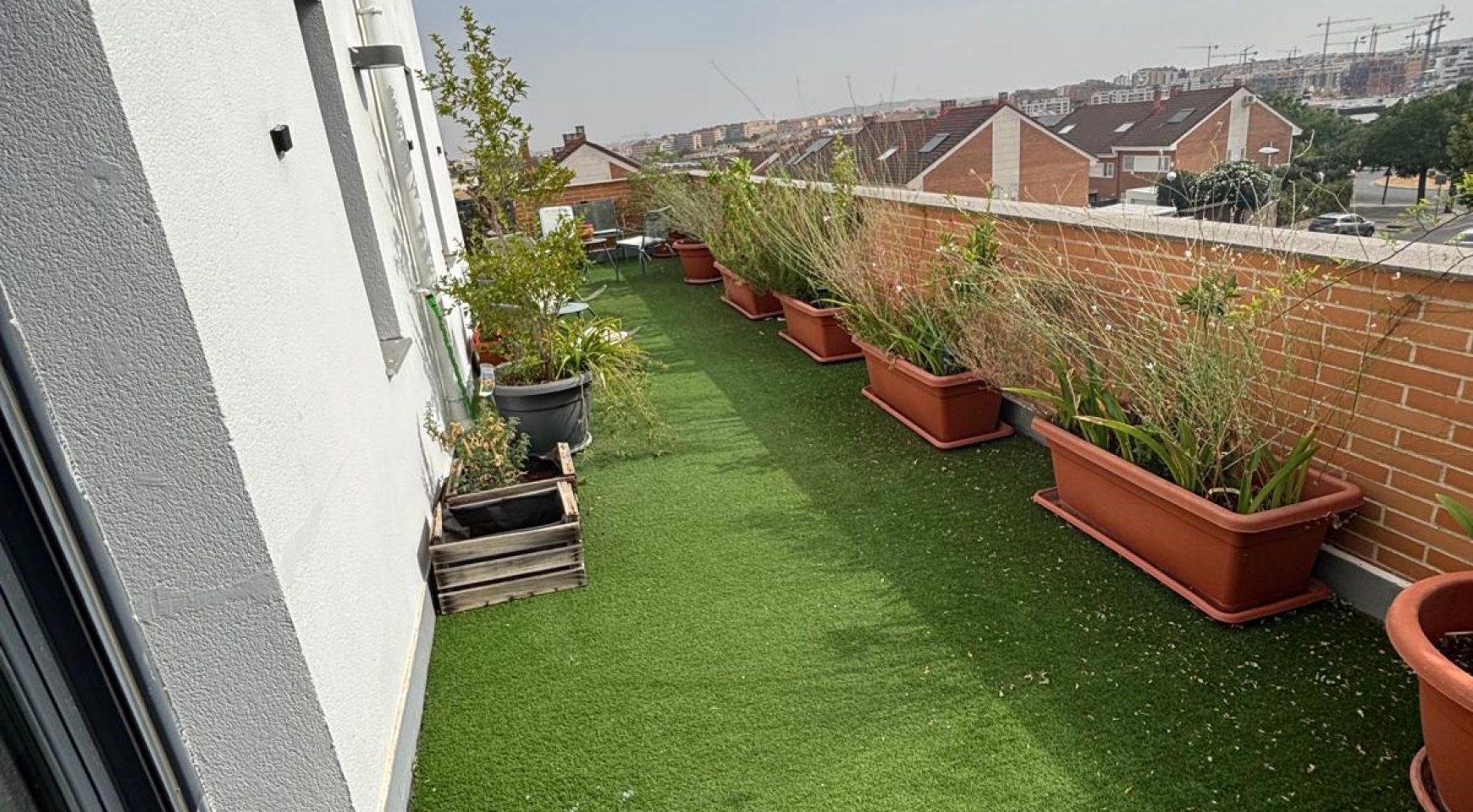 1 dormitorio con salida a una impresionante terraza de 40 m² que rodea la fachada, con césped artificial y vistas despejadas. Ideal como solárium, zona chill out o espacio de ocio.