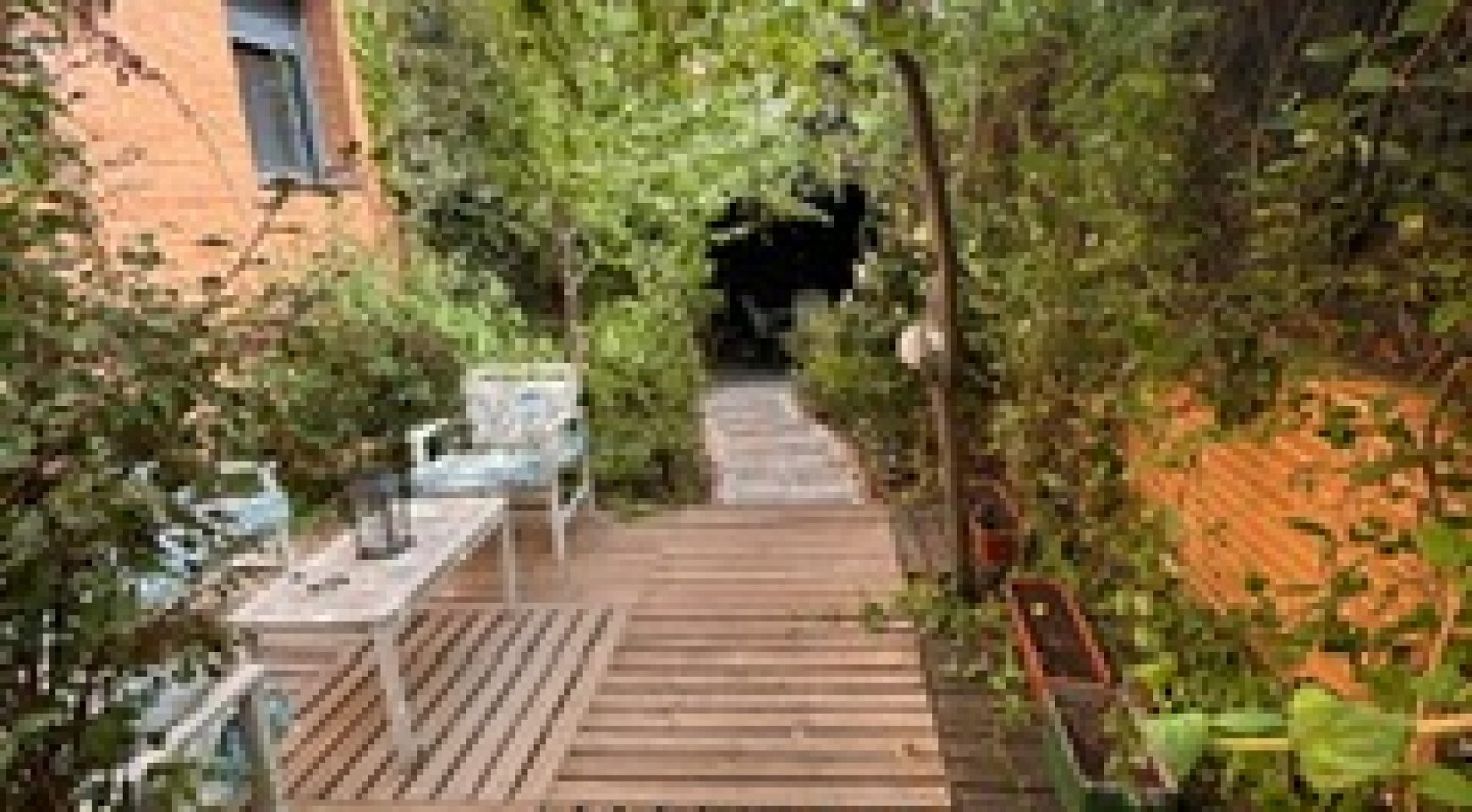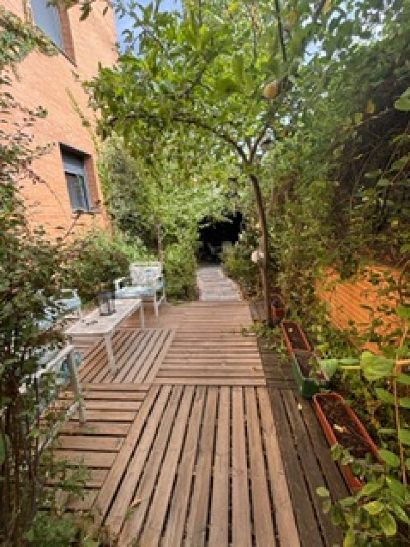 Salón independiente con acceso al jardín, perfecto para crear tu rincón de relax.