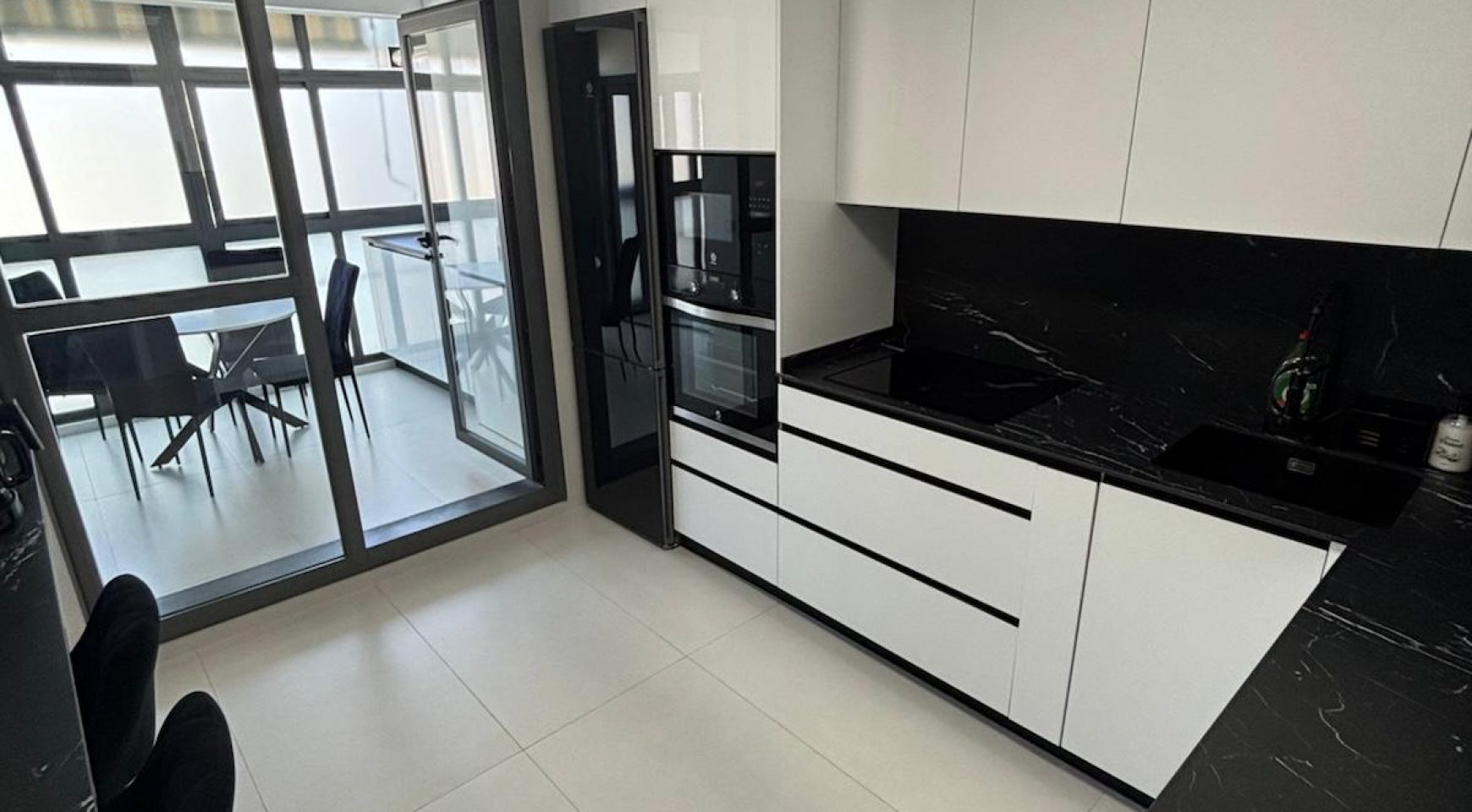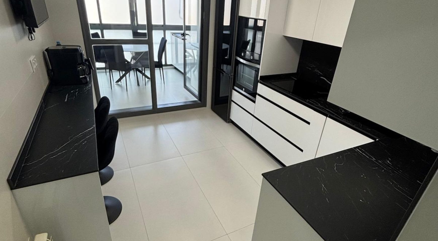 La cocina, completamente amueblada, destaca por su moderna encimera de Dekton, resistente al calor, golpes y ralladuras, combinando estética y durabilidad. Además, cuenta con salida a una segunda terraza acristalada, aportando aún más luz y versatilidad al espacio.