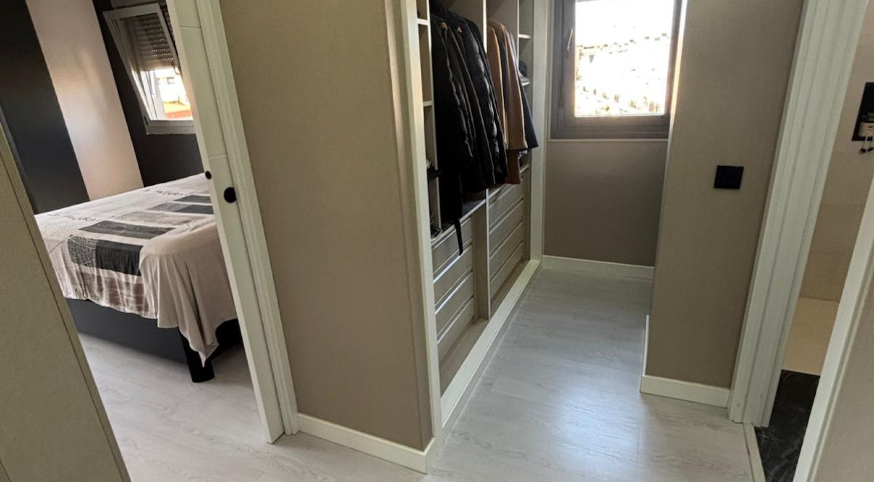 Dispone de 2 dormitorios, uno de ellos tipo suite, con baño privado y vestidor, ofreciendo un espacio íntimo y funcional. Ambos cuentan con armarios empotrados totalmente revestidos en su interior.