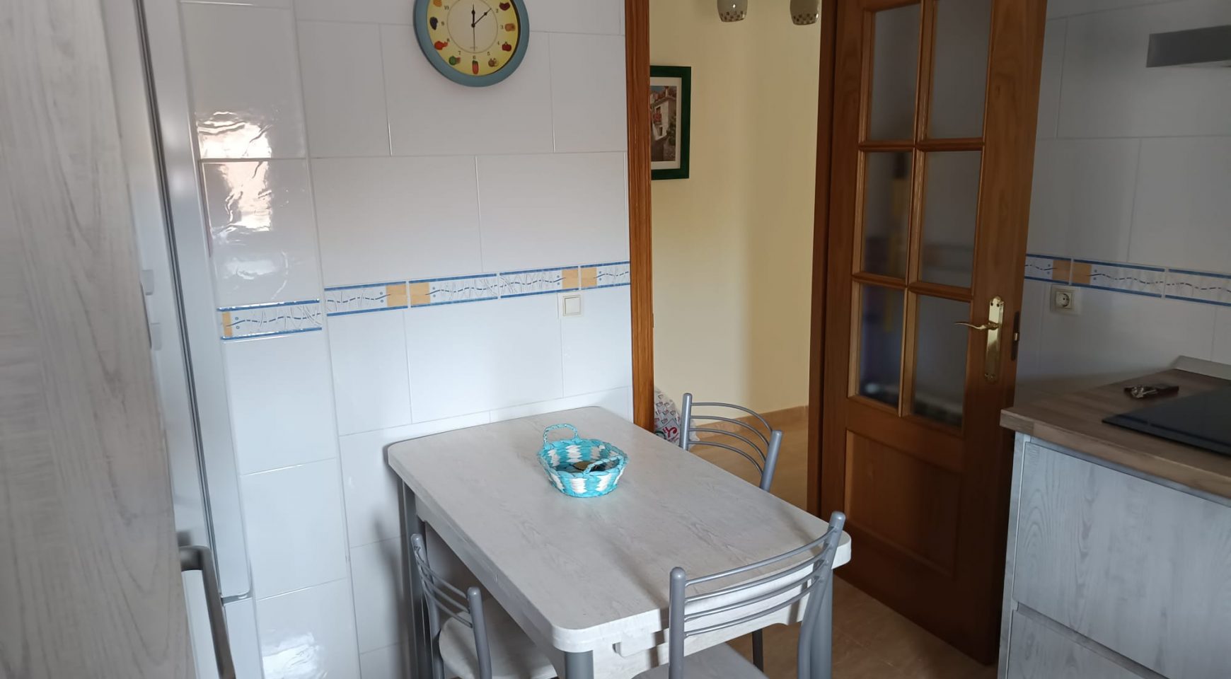 Cuenta con un gran salón ideal para crear un espacio acogedor, cocina amplia con espacio para mesa de comedor, y dos dormitorios de generosas dimensiones, ambos con armarios empotrados. Suelos de gres, puertas de roble y acabados cuidados que aportan confort y estilo.